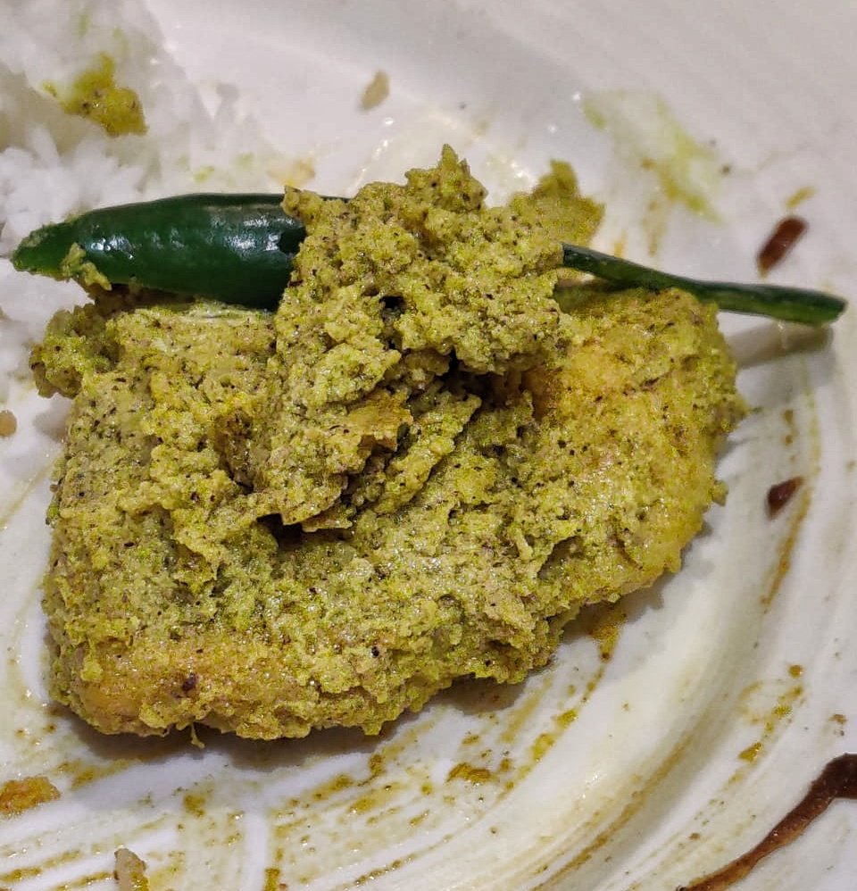 Bhetki paturi – This is one of the signature Bengali fish dish where bhetki maach / Asian sea bass fish along with the paste of mustard wrapped in Banana leaf and cooked it and the result is a juicy succulent peice just goes melting in mouth .