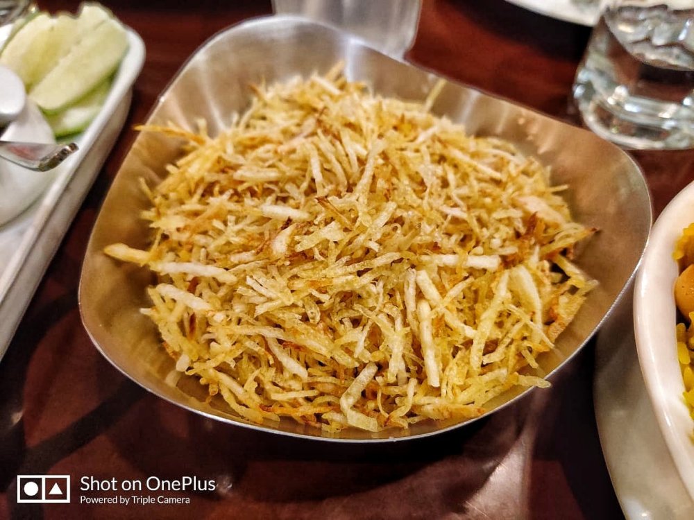 Jhuree aloo vaja – daal er sathe kichu to chai , side e aloo vaja na thakle ki khaoa hoi ( besides lentils we must need one fry i.e. crispy potato fry without that it is incomplete) . Jhuree Aloo Bhaja is a Bengali style potato fry and also quite popular among everyone . It really goes well with rice & daal .