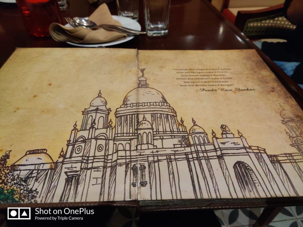 The opening stair case will take you to the restaurant where you will get to feel like you have reached some 60’s north kolkata house , were seating arrangements is spread with old 60’s wooden tables and sofa set chairs . Really got an eye-catching ambience , the colour of the walls, and its spreaded with the pictures of feluda,gupi bagha really a nostalgic one.