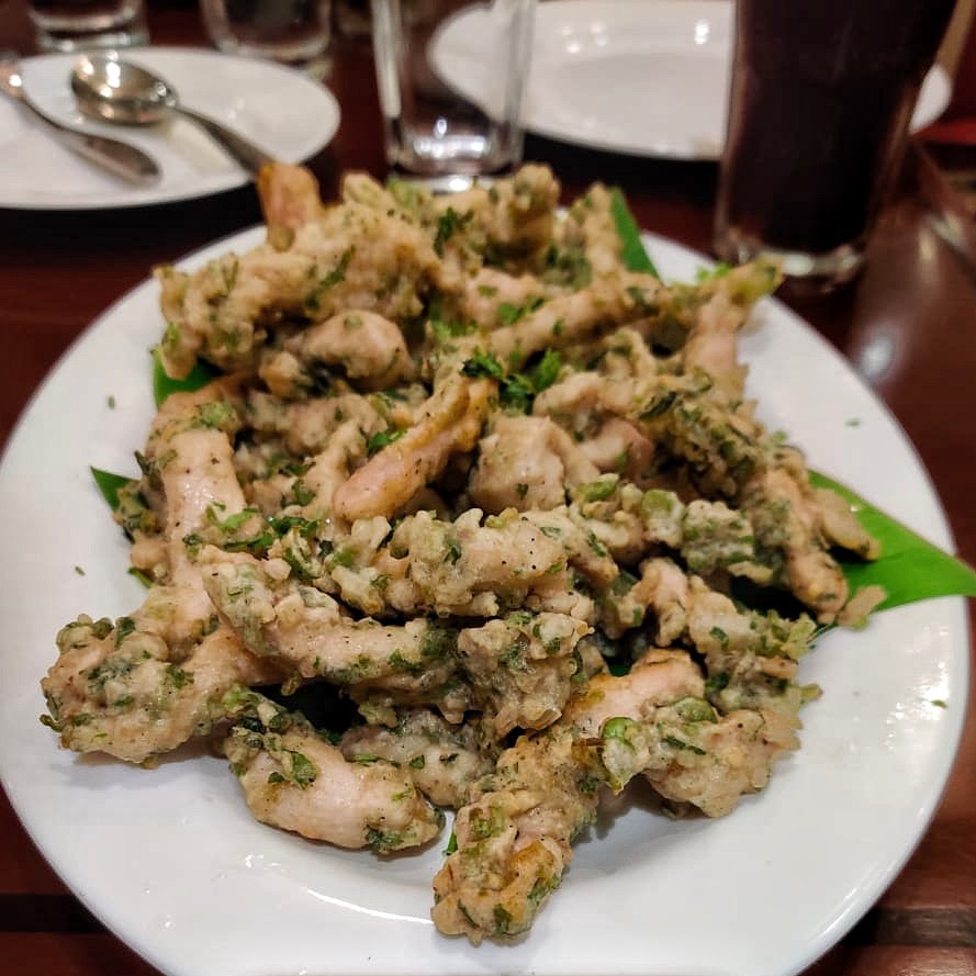 Gondhoraj chicken fry– A finger chicken starter where you will get a flavour gondhoraj .Gondhoraj Chicken is an extremely flavourful. The tender succulent chicken pieces are cooked in light & well balanced oil, flavoured with fragrant none other than Gondhoraj Lebu (King Lime) & Lebu Pata ( Lime Leaf).