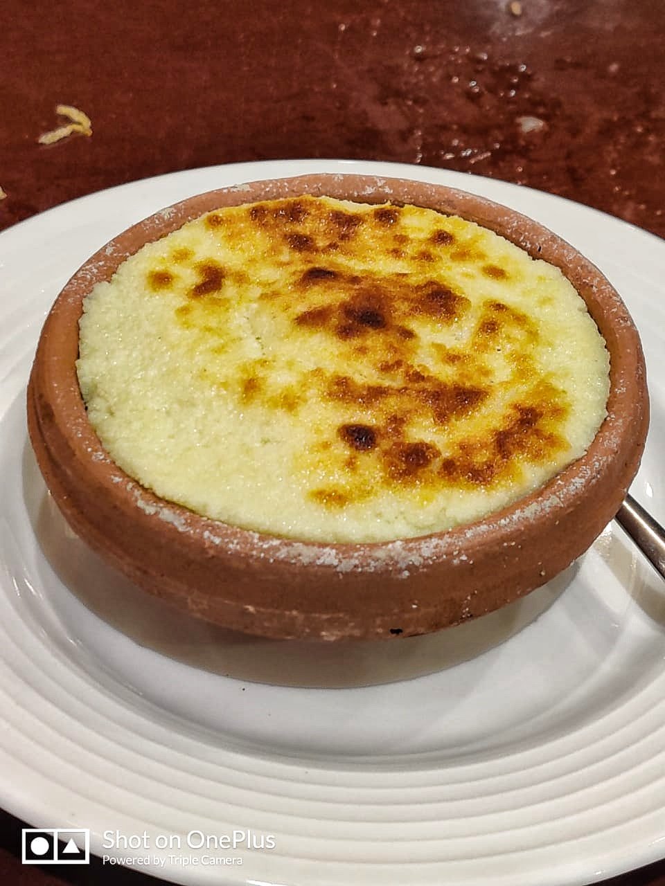 Baked sandesh – Sandesh is a sweet that is made in the West Bengal . Baked Sandesh is really awesome in taste it just melts in the mouth. It is served in a earthen, terracotta, or clay pot, which is said to absorb excessive moisture, giving baked sandesh its typical dense, thick but soft and creamy texture.