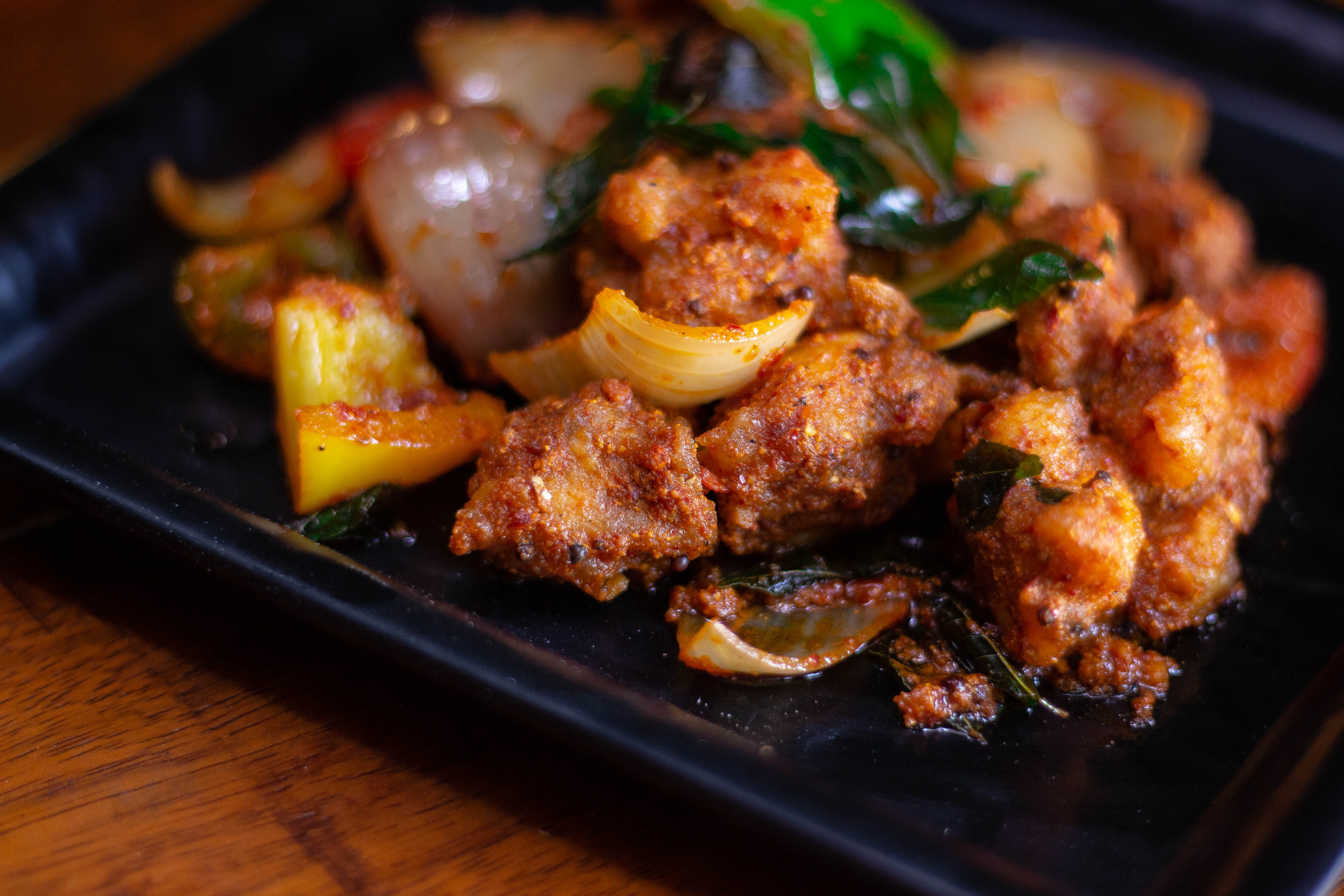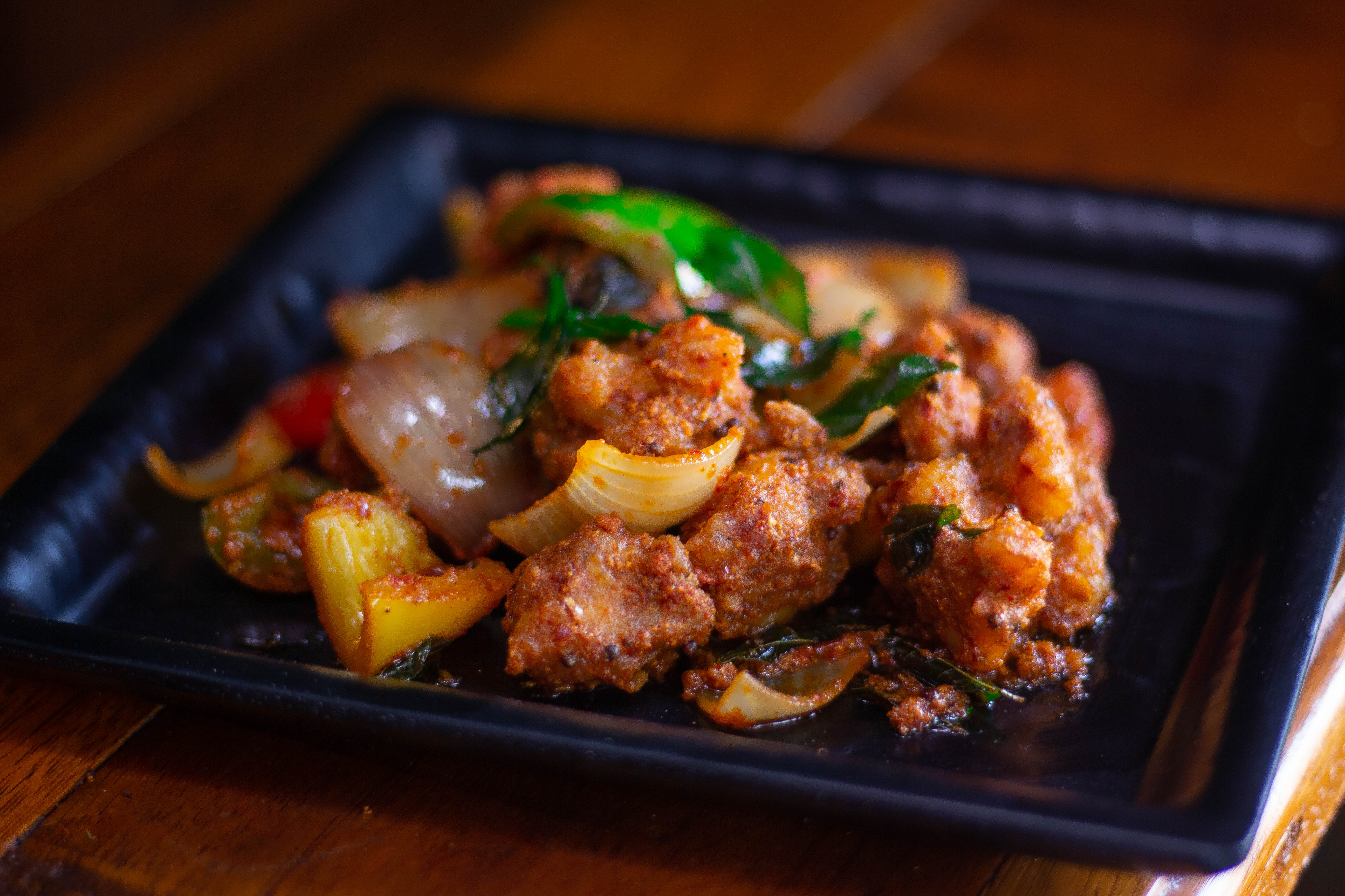Pork dry fry is something that you need in your life if you love pork. It is so flavorful and tastes amazing as a starter . They serve this slow-cooked pork in a crispy fried coating with spices, garlic, bell peppers and onion and finished with a few ingredients that take this preparation to the next level. (Rate – 5/5)